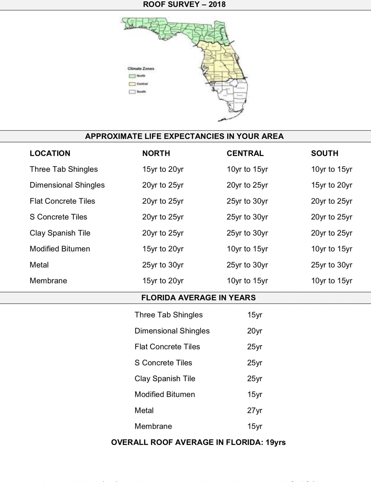 Shingle roof lifespan florida.